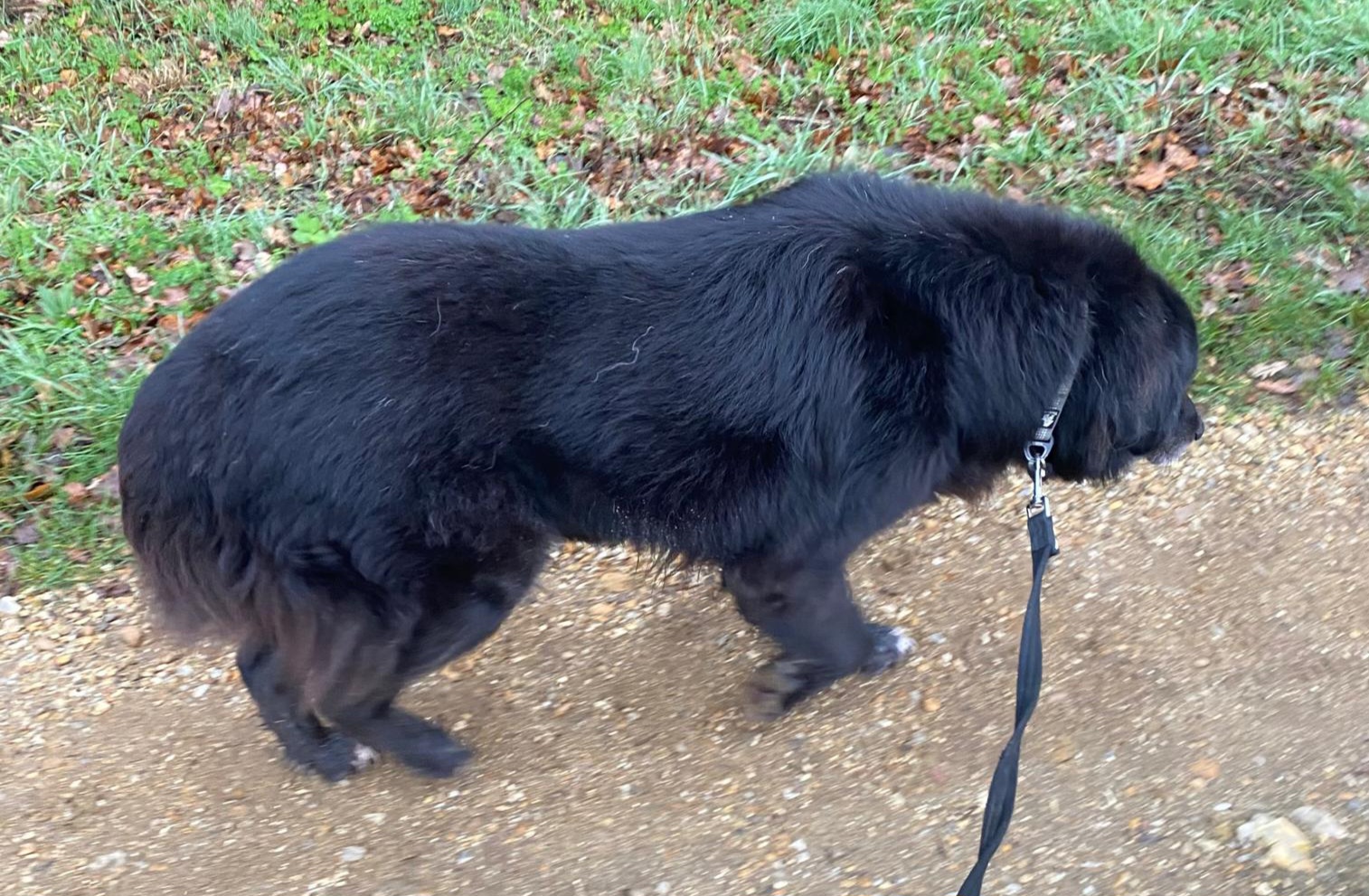 Jimmie enjoys his walks, a stroll and sniffari being more his style than a forced march! He travels well, uses a ramp to get into the boot of the car, or he could climb into the foot well in the back and onto the seat from there. He on a special low fat diet and a joint supplement but otherwise in pretty good nick for big bear who was in a truly pitiful state on arrival.